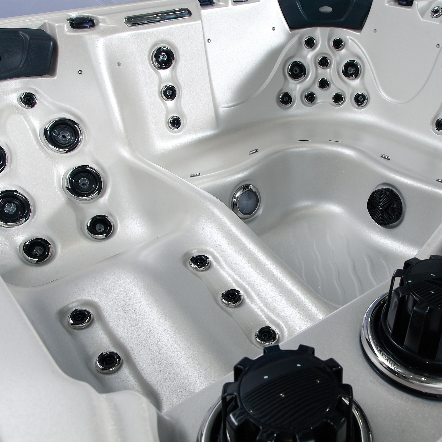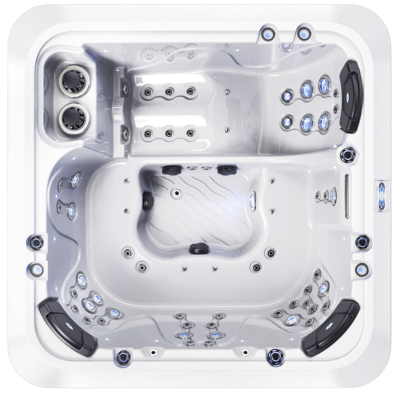 Для изделия таких размеров, в гидромассажном СПА-бассейне Ловиа Спа ZR810 установлено довольно много форсунок - 55 штуки. Через них вода и воздух направленно воздействуют на тело, производя желаемый гидромассажный эффект. Каждый пользователь может индивидуально регулировать силу потока.