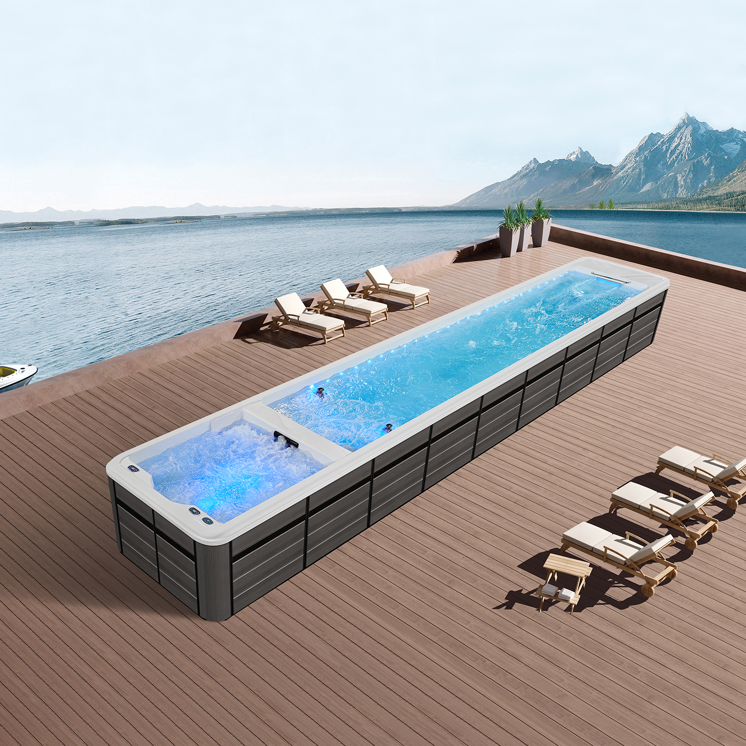 Данная модель бассейна компании Mexda имеет современное техническое оснащение, подходящее для наружной установки.